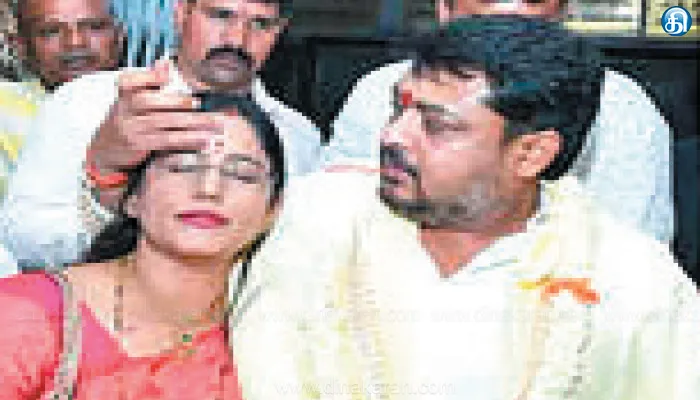 மைசூரு: சாம்ராஜ்நகர் மக்களவை தொகுதியின் எம்பி சுனில்போஸ். கர்நாடக மாநில சமூகநலத்துறை அமைச்சர் எச்.சி.மகாதேவப்பாவின் மகனான இவர், ஆடி வெள்ளியை முன்னிட்டு மைசூரு சாமுண்டி மலையில் உள்ள சாமுண்டீஸ்வரி கோயிலுக்கு சுற்றுலா துறை துணை இயக்குனர் சவிதா என்பவருடன் சாமி தரிசனம் செய்ய வந்தார். அப்போது தரிசனத்தை முடித்துக் கொண்டு ஆதரவாளர்கள் முன்னிலையில் பெண் அதிகாரியின் நெற்றியில் குங்குமப்பொட்டு வைத்துள்ளார். இச்சம்பவத்தின் வீடியோ, போட்டோக்கள் சமூகவலைதளத்தில் வைரலாக பரவி பெரும் சர்ச்சையை ஏற்படுத்தியுள்ளது.