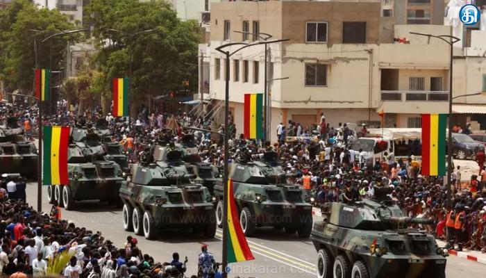 நீண்ட இடைவெளிக்கு பின் நடைபெற்ற ராணுவ அணிவகுப்பில் துப்பாக்கி ஏந்திய வீரர்கள் உற்சாகத்துடன் கலந்துக் கொண்டனர். செனகல் அதிபர் மேக்கி சால் அணிவகுப்பு மரியாதையை ஏற்றுக்கொண்டார். ராணுவ வாகனங்கள் மற்றும் சீருடை அணிந்த வீரர்களின் கண்கவர் அணிவகுப்பை சாலையின் இரு புறங்களிலும் திரண்டு இருந்த மக்கள் ஆர்வமுடன் கண்டு களித்தனர்.