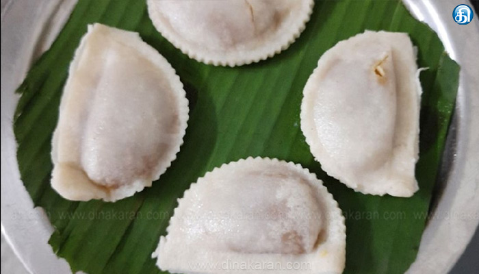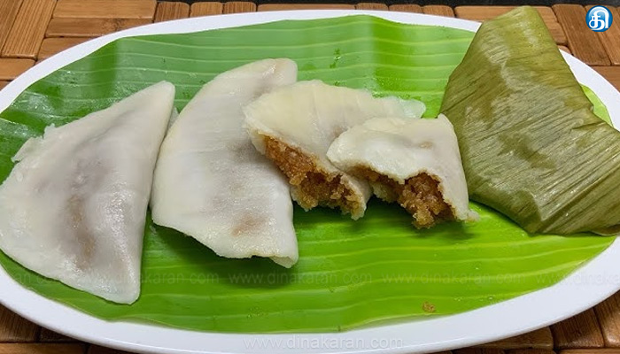 கால் கப் நீரில் ஒரு பின்ச் உப்பு, ஒரு ஸ்பூன் எண்ணெய் சேர்த்து நன்கு கொதித்ததும், சிறிது சிறிதாக மாவு சேர்த்து கிளறி கொழுக்கட்டைக்கான மாவினை தயாரிக்கவும். வெல்லத்தை சிறிது தண்ணீர் விட்டு அதில் தேங்காய் துருவல், ஏலப்பொடி சேர்த்து பூரணம் தயாரிக்கவும். வறுத்த கடலைப்பருப்பையும் கரகரப்பாகப் பொடித்து தேங்காயுடன் சேர்க்கவும். வாழையிலையில் கொஞ்சம் எண்ணெய் தடவி, மாவை வைத்து மெல்லியதாக தட்டி, அதில் பூரணம் வைத்து இலையை மடக்கவும். இதை ஆவியில் வேகவிட்டு