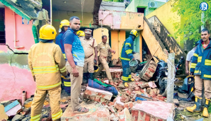 மாவட்ட தீயணைப்பு நிலைய அலுவலர் லோகநாதன் கூறுகையில், ‘‘வெடி விபத்தில் இதுவரை நான்கு நபர்கள் உயிர் இழந்துள்ளனர். தற்போது, பொக்லைன் இயந்திரம் மூலம் இடிபாடுகளை அகற்றும் பணி நடைபெற்று வருகிறது. நாட்டு வெடிகுண்டு என்பதால் திடீர் திடீரென்று சத்தத்துடன் வெடிக்கிறது. தீயணைப்பு பணியில் 30க்கும் மேற்பட்ட தீயணைப்பு வீரர்களும் 100க்கும் மேற்பட்ட போலீசாரும் ஈடுபட்டு வருகின்றனர்’’ என்றார்.