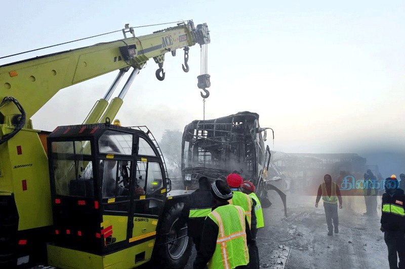 7 பஸ்கள், 3 கார்கள் தீப்பற்றி எரிந்த கொடூரம் : பனிமூட்டத்தால் வாகனங்கள் மோதி உ.பி.யில் 25 பேர் பலி