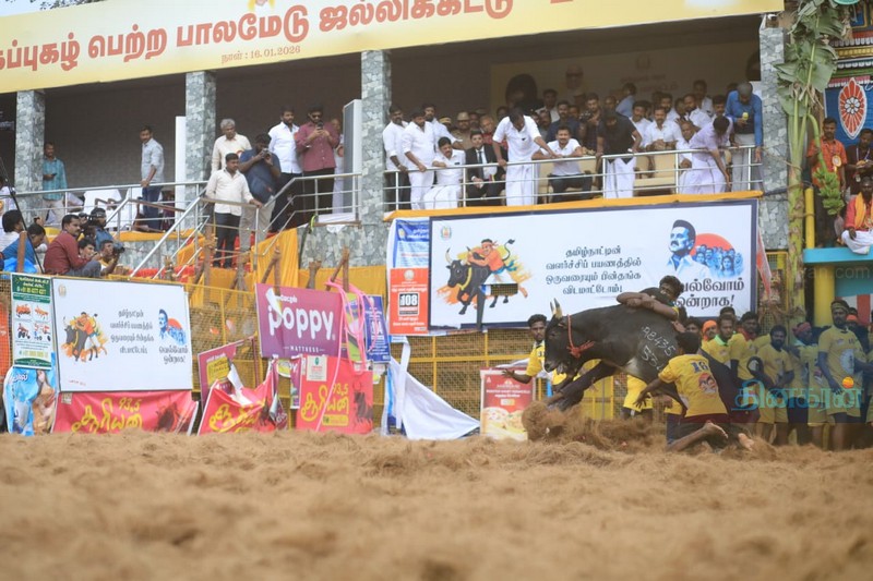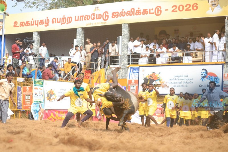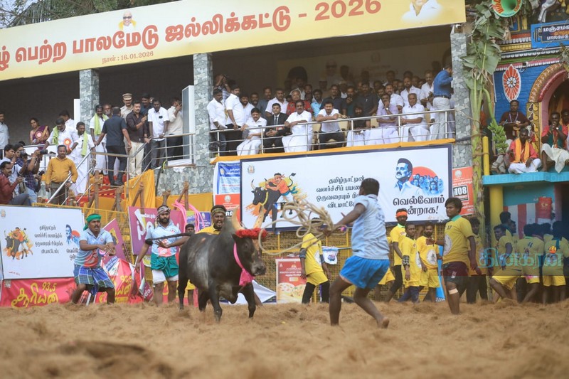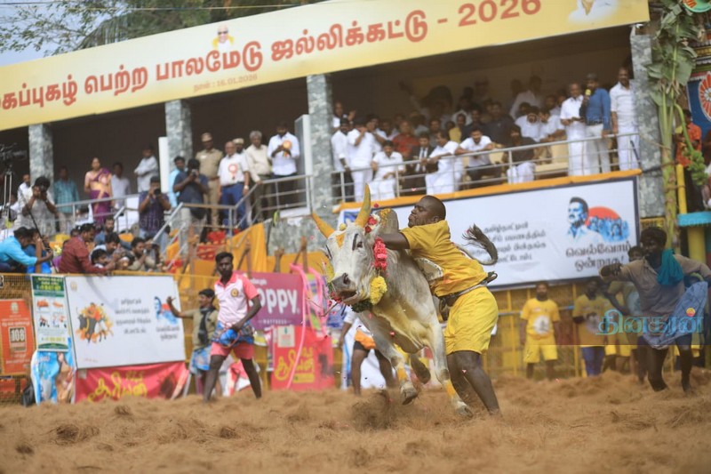 மதுரை பாலமேடு ஜல்லிக்கட்டு : சீறி வரும் காளைகளை சீறிப்பாய்ந்து தழுவும் வீரர்கள்!!