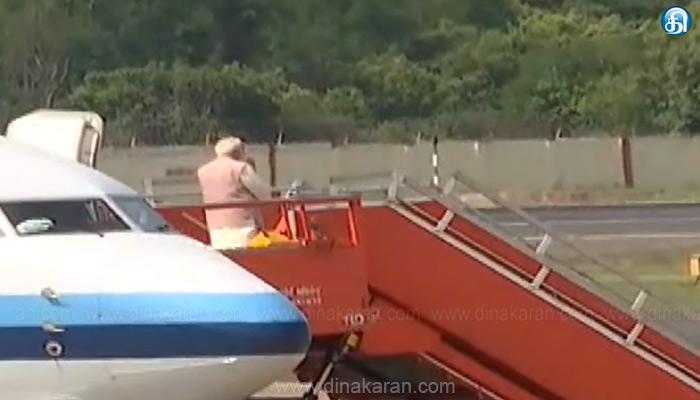 சென்னை: பல்வேறு நிகழ்ச்சிகளில் கலந்துகொள்வதற்காக பிரதமர் மோடி இன்று பிற்பகல் 2.45 மணிக்கு சென்னை வந்தார். விமானநிலையத்தில் முதல்வர் மு.க.ஸ்டாலின், கவர்னர் ஆர்.என்.ரவி மற்றும் ஒன்றிய, மாநில அமைச்சர்கள், அதிமுக, பாஜக தலைவர்கள் வரவேற்றனர். சென்னை விமான நிலையத்தில் புதிதாக அமைக்கப்பட்டுள்ள ஒருங்கிணைந்த முனைய கட்டிடம் மற்றும் சென்னை சென்ட்ரல் ரயில் நிலையத்தில் சென்னை கோவை இடையே செல்லும் வந்தே பாரத் ரயில் சேவை திட்டத்தை தொடங்கி வைப்பதற்காக பிரதமர் மோடி ஐதராபாத்தில் இருந்து 1.35 மணிக்கு புறப்பட்டார். சரியாக 2.45 மணிக்கு சென்னை விமானநிலையம் வந்தார். அவருக்கு சிவப்பு கம்பள வரவேற்பு அளிக்கப்பட்டது.