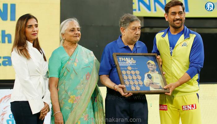 சென்னை: ஐபிஎல் தொடரில் ஒரே அணியின் கேப்டனாக 200 போட்டிகளில் தலைமை வகித்த முதல் வீரர் என்ற பெருமை எம்.எஸ்.தோனிக்கு கிடைத்துள்ளது. சேப்பாக்கம், எம்.ஏ.சிதம்பரம் அரங்கில் ராஜஸ்தான் ராயல்ஸ் அணிக்கு எதிராக நேற்று நடந்த லீக் ஆட்டம், சென்னை அணியின் கேப்டனாக தோனி களமிறங்கிய 200வது போட்டியாக அமைந்தது. இதையொட்டி தோனிக்கு சென்னை சூப்பர் கிங்ஸ் அணி உரிமையாளர் என்.சீனிவாசன் சிறப்பு நினவுப்பரிசு வழங்கி கவுரவித்தார். ஐபிஎல் தொடரின் தொடக்கத்தில் இருந்தே சென்னை அணியுடன் இணைந்துள்ள தோனி, 4 முறை சாம்பியன் பட்டம் வென்று அசத்தியுள்ளார்.