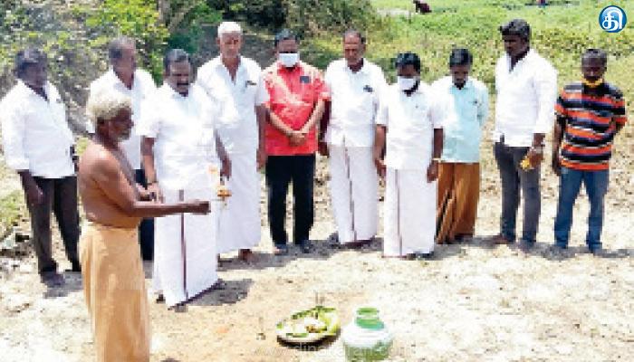 The post எட்டியம்மன் கோயில் குளம் சீரமைக்கும் பணிக்கு பூமி பூஜை appeared first on Dinakaran.
