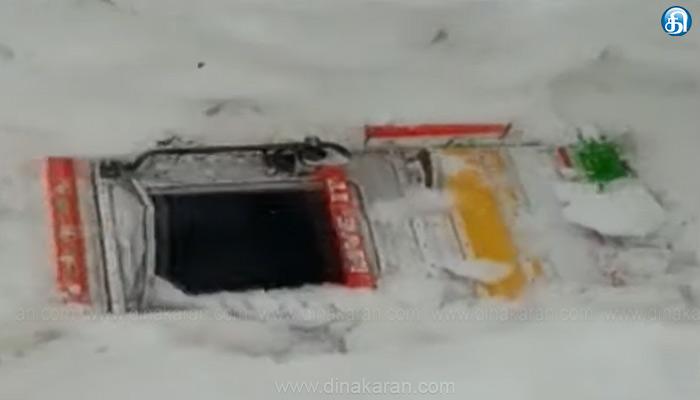 ஜம்மு – காஷ்மீர்: ஜம்மு – காஷ்மீரில் கார்கில் மாவட்டத்திற்குட்ட பட்ட ஜொஜிலா பகுதியில் ஏற்பட்ட பனிச்சரிவில் ஏராளமான வாகனங்கள் சிக்கி கொண்டன. கார்கில் மாவட்டம் மினி மார்க் பகுதியில் நேற்று திடீரென பயங்கர பனிச்சரிவு ஏற்பட்டது. இதில் அந்த வழியாக லென் நோக்கி சென்ற 5 லாரிகள் அடுத்தடுத்து சாலையில் இருந்து கீழே உருண்டு விழுந்து பனிக்கட்டியில் புதைந்தன.