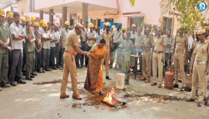 இதனை தொடர்ந்து, பொதுமக்களுக்கு விழிப்புணர்வு ஏற்படுத்தும் வகையில் துண்டு பிரசுரம், செயல்முறை விளக்கம் அளிக்கப்பட்டது. மேலும் மீஞ்சூர், பொன்னேரி, மெதூர், பழவேற்காடு, திருப்பாலைவனம் உள்ளிட்ட பல்வேறு கிராமங்களுக்கு நேரில் சென்றனர். அங்குள்ள பள்ளிகள், பஸ் நிறுத்தங்கள், பொதுமக்கள் அதிகம் கூடும் மார்க்கெட் பகுதியில் பணியாளர்கள் நேரடியாக சென்று துண்டு பிரசுரங்களை வழங்கினர். பின்னர், தீப்பிடித்தால் அதனை அணைப்பதற்கான வழிகளை செயல்முறை விளக்கங்களுடன் எடுத்து கூறி பிரசாரம் செய்தனர். இந்த வாரம் முழுவதும் விழிப்புணர்வு முகாம் நடத்தப்பட உள்ளது.