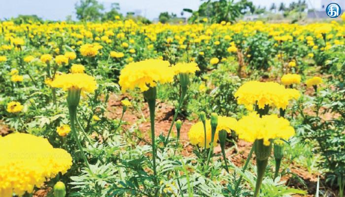 குறிப்பாக, குறுகிய கால மூன்று மாத பயிரான செண்டு மல்லி பூவினை விதைத்து அறுவடை செய்து வருகின்றனர். இந்த பூச்செடிகளுக்கு 8 நாட்களுக்கு ஒரு முறை தண்ணீர் பாய்ச்சினால் போதுமானது. விலையும் கிலோவிற்கு ரூ.60 முதல் ரூ.70 வரை கிடைத்து வருகிறது.கிட்டம்பாளையம் பகுதியைச் சேர்ந்த விவசாயி செல்வராஜ் கூறுகையில்,“தனது தோட்டத்தில் குறுகிய கால பயிரான செண்டு மல்லி பூச்செடிகளை வளர்த்து வருகிறேன். மூன்று மாத காலத்திற்குள் எட்டு முறை அறுவடை செய்யலாம். அதிகபட்சமாக எட்டு நாட்களுக்கு ஒரு முறை மட்டுமே தண்ணீர் பாய்ச்சினால் போதும். மேலும், பூவின் விலையும் ரூ.60 முதல் ரூ.70 வரை கிடைத்து வருவதால் குறைந்த அளவிலான லாபமும் கிடைத்து வருகிறது. கோடை காலங்களில் விவசாய கிணறுகளில் தண்ணீர் பற்றாக்குறை நிலவும். இதனை ஈடுகட்டும் வகையில் தண்ணீரினை அளவாக உட்கொள்ளும் செண்டுமல்லி உள்ளிட்ட பயிர்களை பயிரிடுவதன் மூலம் லாபம் ஈட்டலாம்.
