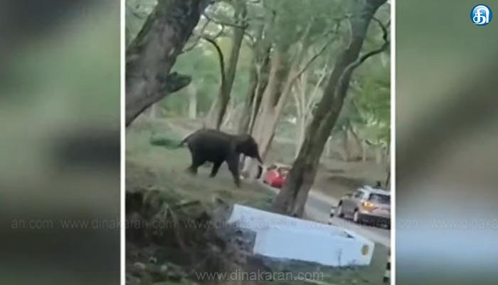 அந்த வகையில் சாலையோரத்தில் புற்களை மேய்ந்து கொண்டிருந்த காட்டு யானை ஒன்று திடீரென அவ்வழியாக வந்த வாகனங்களை துரத்தியது. சுற்றுலாப்பயணிகள் தங்கள் வாகனங்களை பின்னோக்கி எடுத்து தப்பித்தனர். யானை மீண்டும் மூங்கில்களை உடைத்து சாப்பிட்டு பின்பு வனப்பகுதிக்குள் சென்றது. வனவிலங்குகள் மேய்ச்சலில் ஈடுபடும் போது வாகனங்களை நிறுத்தி புகைப்பட வீடியோ எடுப்பதை தவிர்க்க வேண்டும் என வனத்துறை அறிவுறுத்தியுள்ளது.
