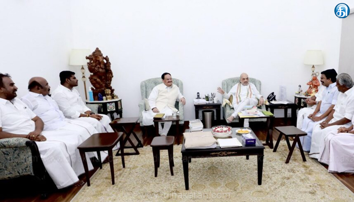 அவர் நேற்று முன்தினம் இரவு 9 மணிக்கு டெல்லியில் உள்துறை அமைச்சர் அமித்ஷாவை அவரது வீட்டில் சந்தித்து பேசினார். அப்போது பாஜ அகில இந்திய தலைவர் ஜே.பி.நட்டா, அதிமுக முன்னாள் அமைச்சர்கள் கே.பி.முனுசாமி, தங்கமணி, வேலுமணி, சி.வி.சண்முகம், ஜெயக்குமார் மற்றும் தமிழக பாஜ தலைவர் அண்ணாமலை ஆகியோர் உடன் இருந்தனர். இந்த சந்திப்பு சுமார் 50 நிமிடம் நடைபெற்றது. அமிஷாவை சந்தித்த எடப்பாடி பழனிசாமி நேற்று காலை 11 மணிக்கு டெல்லியில் இருந்து புறப்பட்டு விமானம் மூலம் மதியம் கோவை வந்தடைந்தார்.