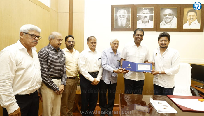 The post ஏ.டி.பி சேலஞ்சர் 100 ஆடவர் சர்வதேச டென்னிஸ் போட்டிக்கான அரசின் நிதியுதவியாக ரூ1 கோடிக்கான காசோலையை வழங்கினார் உதயநிதி ஸ்டாலின் appeared first on Dinakaran.