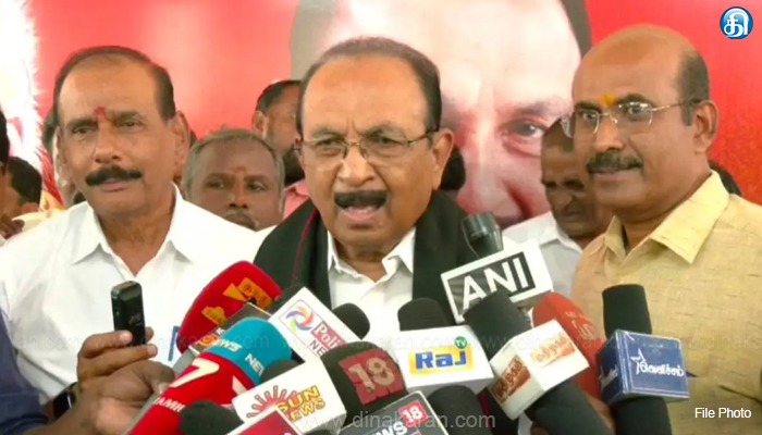 2 வருடமாக வராதவர் இப்போது அறிக்கை கொடுக்கிறார் என்றால் அது நல்ல நோக்கத்திலா இருக்க முடியும். அவருக்கு வேண்டும் என்றால் அப்படி ஒரு எண்ணம் இருக்கலாம். கட்சியில் இருக்கும் 99.9 சதவீதம் பேருக்கு கட்சியை இணைக்கும் எண்ணம் இல்லை. இது தான் தமிழ்நாடு முழுவதும் மதிமுக தொண்டர்களின் உணர்வு. 30 வருடம் நாங்கள் போராடி பயணித்து வந்துவிட்டோம். எத்தனையோ கஷ்டங்களை கடந்து வந்திருக்கிறோம். இதையும் கடந்து செல்வோம். துரைசாமி மீது நடவடிக்கை எடுக்கப்படுமா என்ற கேள்விக்கு; நாங்கள் சிலவற்றை அலட்சியப்படுத்துகிறோம். சிலவற்றை நிராகரிக்கிறோம். ஜனநாயகப்படி கட்சி நடைபெற்று வருகிறது. கட்சி தேர்தல் நடைபெற்று வருகிறது. விரும்புகிறவர்கள் பொறுப்புக்கு வருகிறார்கள். இதற்கு மேல் நான் அதற்கு முக்கியத்துவம் கொடுத்து பேச விரும்பவில்லை. இவ்வாறு வைகோ கூறினார்.
