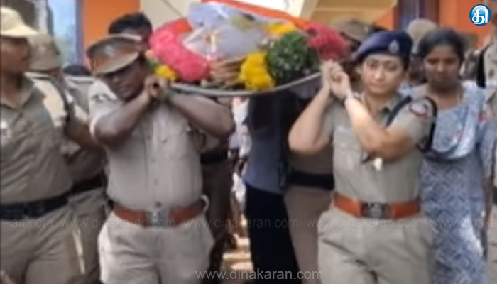 The post மாடு முட்டி பலியான காவலர் உடலை மயானத்துக்கு தோளில் சுமந்து சென்ற பெண் எஸ்பி appeared first on Dinakaran.
