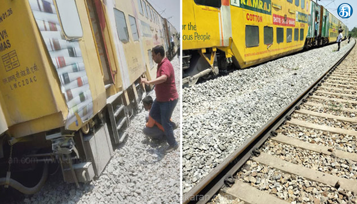 குப்பம்: ஆந்திர மாநிலத்தில் இரட்டை அடுக்கு விரைவு ரயில் திடீரென தடம் புரண்டதால் பரபரப்பு ஏற்பட்டது. குளிர்சாதன வசதியுடன் சென்னையில் இருந்து ஆம்பூர், வாணியம்பாடி, ஜோலார்பேட்டை வழியாக குப்பம் பகுதிக்கு சென்று கர்நாடகா வரை செல்லக்கூடிய இரட்டை அடுக்கு ரயிலானது குப்பம் அருகே உள்ள பிசாநத்தம் என்ற இடத்தில் தடம் புரண்டுள்ளது. 14 பெட்டிகளை கொண்ட இந்த ரயிலானது ஆந்திர மாநிலம் மற்றும் கர்நாடக மாநிலம் எல்லை பகுதியில் விபத்துக்குள்ளானது. ரயில் பயணிகள் சுமார் 1 மணி நேரத்திற்கும் மேலாக அவதிக்குள்ளாகினர்.