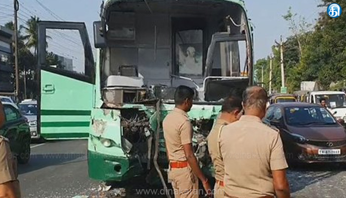 சென்னை: குரோம்பேட்டை அரசு மருத்துவமனை சிக்னலில் நின்று கொண்டிருந்த மாநகர பேருந்து மீது, தென்காசியில் இருந்து சென்னை நோக்கி வந்த அரசுப் பேருந்து மோதிய விபத்தில் 10 பேர் காயமடைந்துள்ளனர். இந்த விபதியில் காயம் அடைந்த ஓட்டுநர் மற்றும் பயணிகளுக்கு மருத்துவமனையில் சிகிச்சை அளிக்கப்பட்டு வருகிறது