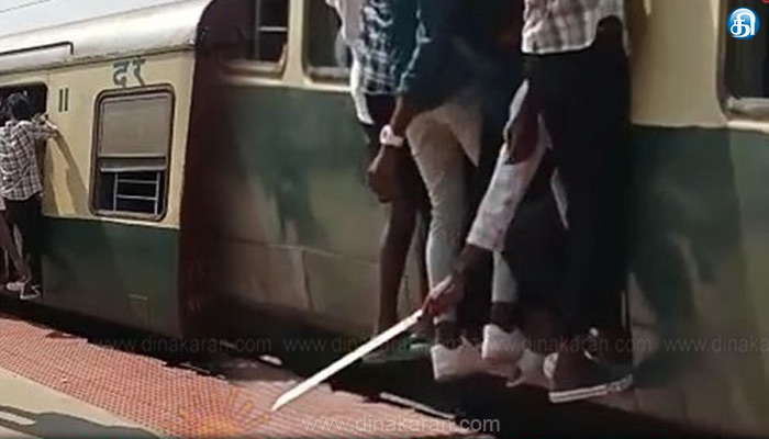 சென்னை: பட்டாபிராம் ரயில் நிலையத்தில், சக பயணிகளை அச்சுறுத்தும் வகையில், பட்டாக்கத்தியுடன் ரயில் படிக்கட்டில் தொங்கியபடி பயணித்த கல்லூரி மாணவர்களை ரயில்வே பாதுகாப்பு படையினர் உடனடியாக கைது செய்தனர். வீடியோ ஆதாரத்தைக் கொண்டு கல்லூரி மாணவர்களான, சரண்ராஜ் மற்றும் அபினேஷ் கைது செய்யப்பட்டுள்ளனர்