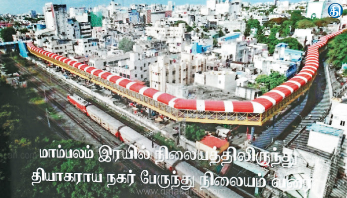 மாம்பலம் ரயில் நிலைய நடைமேம்பாலத்தை தி.நகர் பேருந்து நிலையத்துடன் இணைக்கும் வகையிலும், மாம்பலம் ரயில் நிலைய நடைமேம்பாலத்திலிருந்து ரயில்வே மார்க்கெட் சாலை, மேட்லி சாலை வழியாக தி.நகர் பேருந்து நிலையம் வரை சீர்மிகு நகர திட்ட நிதியின் கீழ், ரூ. 28 கோடியே 45 லட்சம் செலவில், 7 மீட்டர் உயரத்தில், 570 மீட்டர் நீளம் மற்றும் 4.20 மீட்டர் அகலத்தில் நகரும் படிக்கட்டு மற்றும் மின்தூக்கிகளுடன் கூடிய ஆகாய நடைமேம்பாலம் அமைக்கப்பட்டுள்ளது. இந்த ஆகாய நடைமேம்பாலமானது பல்வகை போக்குவரத்தினை ஒருங்கிணைக்கும் வகையில், தென் தமிழகத்திலிருந்து வரும் ரயில் பயணிகள் மற்றும் மின்சார தொடர்வண்டியில் பயணிக்கும் பயணிகள் சிரமமின்றி தி.நகர் பேருந்து நிலையத்தை அடையும் வண்ணம், மாம்பலம் ரயில் நிலைய நடைமேம்பாலத்துடன் இந்த ஆகாய நடைமேம்பாலம் ஒருங்கிணைக்கப்பட்டுள்ளது. இந்த ஆகாய நடைமேம்பாலத்தால் தினமும் சுமார் ஒரு லட்சம் மக்கள் பயனடைவர்.