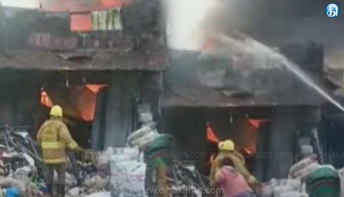 தேனி மாவட்டம் ஆண்டிப்பட்டியில் பழைய இரும்பு கிடங்கில் தீ விபத்து: ரூ.10 லட்சம் மதிப்பிலான பொருட்கள் தீயில் எரிந்து நாசம்