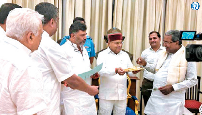 இதை தொடர்ந்து காங்கிரஸ் கட்சியை ஆட்சி அமைக்க அழைக்கும்படி சித்தராமையா உள்ளிட்ட தலைவர்கள் நேற்று ஆளுநர் தாவர்சந்த் கெலாட்டை சந்தித்து முறைப்படி கடிதம் கொடுத்தார். அதையேற்று கொண்டுள்ள ஆளுநர் விரைவில் அழைப்பு விடுப்பதாக உறுதியளித்தார். இந்நிலையில் பதவியேற்பு விழா நடக்கும் பெங்களூரு கண்டீரவா விளையாட்டு அரங்கில் ஏற்பாடுகள் செய்யும் பணி புயல் வேகத்தில் தொடங்கியுள்ளது. மேலும் பெங்களூருவில் உள்ள சித்தராமையாவின் வீட்டிற்கு பலத்த போலீஸ் பாதுகாப்பு கொடுக்கப்பட்டுள்ளது.