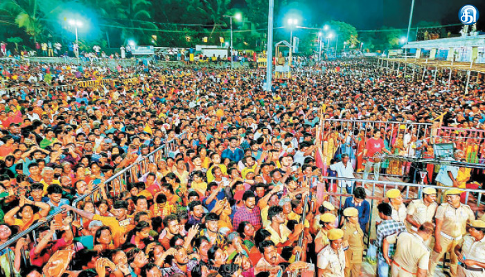 அச்சமயம் ஊஞ்சல் மண்டபம் எதிரில் இருந்த ஆயிரக்கணக்கான பக்தர்கள் கையில் தீபம் ஏற்றி அம்மனை வழிபட்டனர். தொடர்ந்து கோயில் பூசாரிகள் அங்காளம்மனை வாழ்த்தி தாலாட்டு பாடல் பாடினர். இரவு ஊஞ்சல் உற்சவம் முடிந்து அம்மனுக்கு தீபாராதனை நடைபெற்ற பின் உற்சவர் அங்காளம்மனை கோயில் மண்டபத்திற்கு கொண்டு சென்றனர். தமிழகத்தின் பல்வேறு பகுதியில் இருந்து வந்திருந்த பக்தர்களின் வசதிக்காக சிறப்பு பேருந்துகள் தமிழக அரசின் சார்பால் இயக்கப்பட்டது.