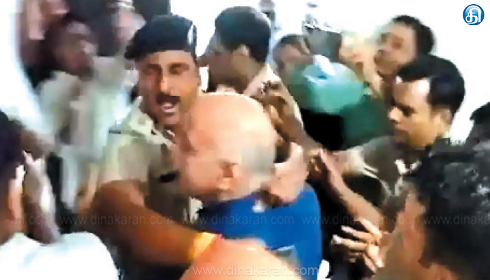 அப்போது பாதுகாப்புக்கு வந்த போலீசார் ஒருவர் சிசோடியை கழுத்தை பிடித்து இழுத்து செல்லும் விடியோ வௌியாகி பரபரப்பை ஏற்படுத்தியுள்ளது.