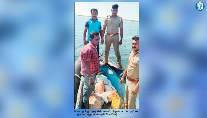 The post 200 கிலோ கடல் அட்டை கடலுக்கு அடியில் பதுக்கல்-மண்டபம் மரைன் போலீசார் மடக்கினர் appeared first on Dinakaran.
