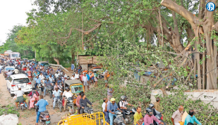 இதன் ஒரு கட்டமாக, நாகர்கோவில் ஒழுகினசேரி சந்திப்பில் போக்குவரத்துக்கு இடையூறாக இருந்த மரக்கிளைகளை வெட்டி அகற்றும் பணிகள் நேற்று (செவ்வாய்) காலை நடைபெற்றது. இதனால் நாகர்கோவில் ஒழுகினசேரி பகுதியில் கடுமையான போக்குவரத்து நெருக்கடி ஏற்பட்டது. திருநெல்வேலி மார்க்கத்தில் இருந்து வந்த வாகனங்கள், நாகர்கோவில் நகருக்குள் நுழைய முடியாமல் அப்படியே ஸ்தம்பித்து நின்றன.