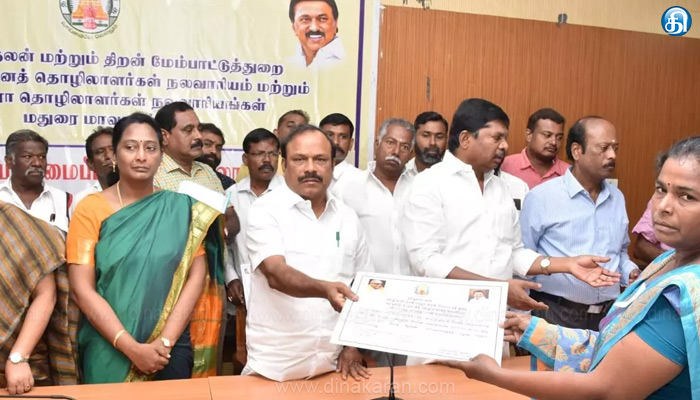 மதுரை: தொழிலாளர் நலன் மற்றும் திறன் மேம்பாட்டுத்துறை சார்பாக நேற்று, மதுரை கலெக்டர் அலுவலகத்தில் நடந்த நிகழ்ச்சியில் 362 பேருக்கு ஒரு கோடியே 3 லட்சத்து 34 ஆயிரம் மதிப்பிலான நலத்திட்ட உதவிகளை, அமைச்சர் சி.வி.கணேசன் வழங்கி பேசியதாவது: அதிமுக அரசு பொறுப்பு வகித்த 10 ஆண்டுகளில், தொழிலாளர்கள் நலனுக்கான திட்டங்கள், பயனாளிகளை முழுமையாக சென்றடையவில்லை. உதவித்தொகையும் உயர்த்தப்படவில்லை.