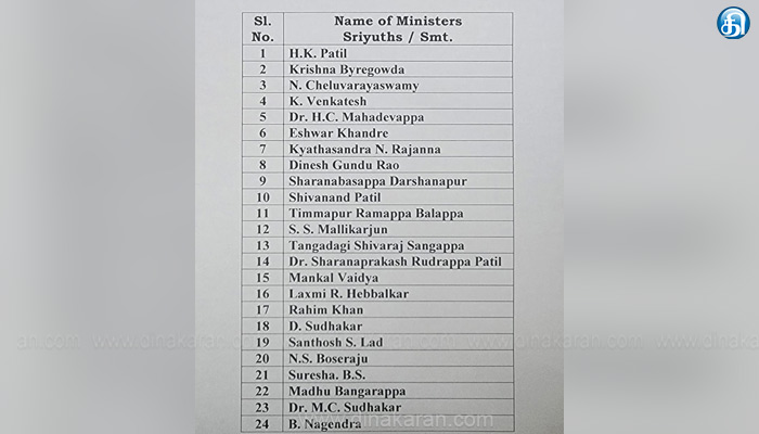 The post கர்நாடகா மாநிலத்தில் காங்கிரஸ் கட்சியைச் சேர்ந்த 24 அமைச்சர்கள் நாளை பதவியேற்பு… appeared first on Dinakaran.