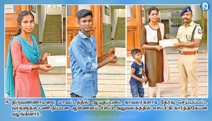 திருவண்ணாமலை : திருவண்ணாமலை மாவட்டத்தில் 2ம் நிலை காவலர் பணிக்கு தேர்வான 117 பேருக்கு பணி நியமன ஆணைகளை எஸ்பி கார்த்திகேயன் வழங்கினார்.