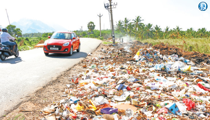 பிளாஸ்டிக் இல்லா மாவட்டமாக அறிவிக்கப்பட்ட குமரியில் சாலையோரம் வீசப்படும் பிளாஸ்டிக் கழிவுகள்