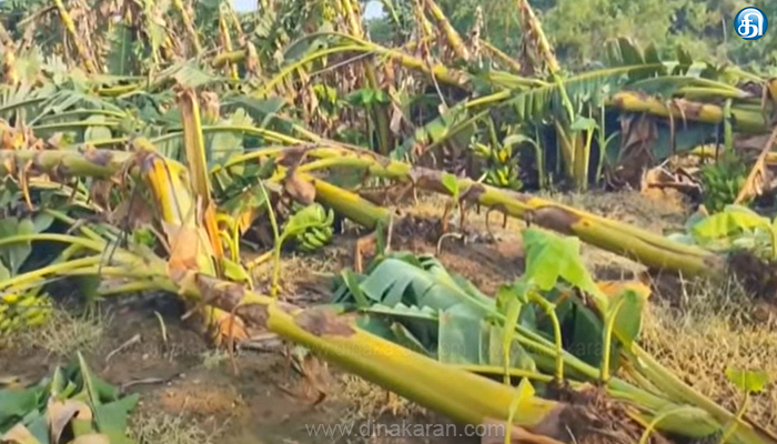 ஈரோடு, தி.மலையில் சூறாவளி காற்றால் 500க்கும் மேற்பட்ட வாழை மரங்கள் சேதம்!: விவசாயிகள் வேதனை.. இழப்பீடு வழங்க கோரிக்கை..!!