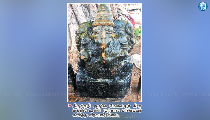 திருச்சுழி : திருச்சுழி அருகே மேலையூர் கிராமத்தில் முற்கால பாண்டியர் காலத்து விநாயகர் சிலை கண்டெடுக்கப்பட்டுள்ளது.திருச்சுழி மேலையூர் கிராமத்தில் ஒரு பழமையான விநாயகர் சிற்பம் இருப்பதாக அவ்வூரைச் சேர்ந்த ஜோதிலிங்க கருப்பசாமி கொடுத்த தகவலின் படி தேவாங்கர் கலைக் கல்லூரி வரலாற்று துறை உதவி பேராசிரியரும் பாண்டியநாடு பண்பாட்டு மைய கள ஆய்வாளர் ரமேஷ் மற்றும் பாண்டியநாடு பண்பாட்டு மைய தொல்லியல் கள ஆய்வாளர்களான தர் மற்றும் முனைவர். தாமரைக்கண்ணன் ஆகியோர் கள ஆய்வு மேற்கொண்டனர்.