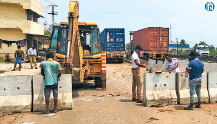 இந்நிலையில், கடந்த ஒரு வாரமாக போக்குவரத்துக்கு இடையூறாக சாலைகளில் நிறுத்தப்பட்டிருந்த 120க்கும் மேற்பட்ட லாரிகளுக்கு ரூ.3.5 லட்சம் அபராதம் விதித்துள்ளனர். மேலும், கனரக வாகனங்கள் சர்வீஸ் சாலையில் நிறுத்தாதபடி இருசக்கர வாகனங்கள், கார்கள் செல்லும் அளவிற்கு வழி விட்டு சிமெண்ட் சுவர் தடுப்புகள் வைக்கப்பட்டுள்ளன. இதனால், லாரிகள் சாலையில் நிறுத்த முடியாது எனவும், சிமெண்ட் தடுப்பு சுவரை அகற்றுபவர்கள் மீது கடும் நடவடிக்கை எடுக்கப்படும் என போக்குவரத்து ஆய்வாளர் தெரிவித்தார்.