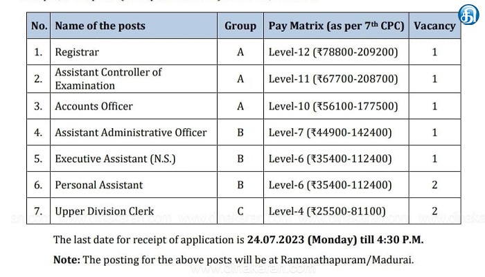 மதுரை: மதுரை எய்ம்ஸ் மருத்துவக் கல்லூரிக்கு பதிவாளர் உட்பட பல்வேறு பணியிடங்களுக்கு விண்ணப்பிக்கலாம் என அறிவிக்கப்பட்டுள்ளது. தகுதி உள்ளவர்கள் ஜூலை 24ம் தேதி மாலை 4.30 மணிக்குள் விண்ணப்பங்களை அனுப்பலாம் என அறிவிக்கப்பட்டுள்ளது.