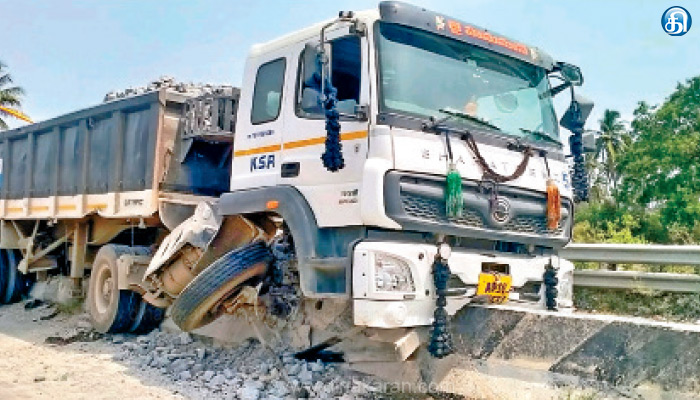 இந்நிலையில் நேற்று அதிகாலை ஆந்திர மாநிலத்தில் இருந்து சென்னை நோக்கி வந்த ஜல்லி கற்கள் ஏற்றிய லாரி சூளைமேனி பகுதியில் உள்ள சென்டர் மீடியனில் மோதியது. இதில் டிரைவர் அதிஷ்டவசமாக உயிர் தப்பினார். மேலும், இதே போல் பெரியபாளையம், தண்டலம் பகுதிகளில் வாகனங்கள் மோதி சென்டர் மீடியன்கள் சேதமடைந்துள்ளது. சேதமடைந்த இந்த சென்டர் மீடியன்களை சீரமைக்க வேண்டும் என சமூக ஆர்வலர்கள் கோரிக்கை வைத்துள்ளனர்.
