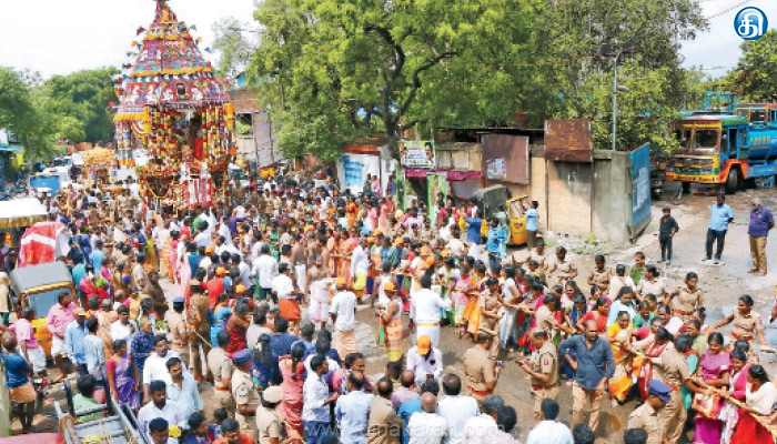 காலை 9.30 மணிக்கு தொடங்கிய தேரோட்டம் மதியம் 3 மணிக்கு முடிவடைந்தது. இந்த தேர்திருவிழாவில் பல்லாயிரக்கணக்கான பக்தர்கள் கலந்து கொண்டனர். தேர் செல்லும் வழி எங்கும் பொதுமக்கள் தேருக்கு ஆரத்தி எடுத்து தேங்காய் உடைத்து வழிபட்டனர். தேர்த் திருவிழாவுக்கு புளியந்தோப்பு துணை கமிஷனர் ஈஸ்வரன், உதவி கமிஷனர் தமிழ்வாணன், செம்பேடு பாபு, இன்ஸ்பெக்டர்கள் சந்திரசேகர், குணசேகர், வர்கீஸ், வானமாமலை தலைமையில் 200 க்கும் மேற்பட்ட போலீசார்பாதுகாப்பு பணியில் ஈடுபட்டனர். சென்னை மாநகராட்சி சார்பிலும் பல்வேறு சிறப்பு வசதிகள் செய்யப்பட்டிருந்தன. சுகாதாரத் துறை சார்பில் மருத்துவ முகாம்கள் அமைக்கப்பட்டிருந்தது. முன்னதாக வழிநெடுகிலும் பொதுமக்கள் அன்னதானம் கொடுத்து தங்களது நேர்த்திக்கடனை செய்தனர்.