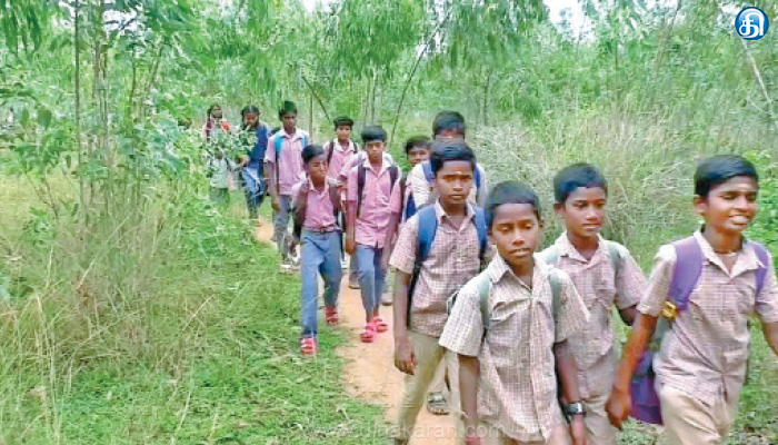 மேலும் சாலை வசிதி இல்லாததாலும், பேருந்து வசதி இல்லாததாலும பள்ளி மாணவர்கள் தைல மரக்காட்டு வழியாக நடந்து செல்கின்றனர். பள்ளி மாணவர்கள் அந்த வழியாக செல்லும் போது அச்சத்துடன் சென்று வருகின்றனர்.எனவே மாவட்ட நிர்வாகம் நடவடிக்கை எடுத்து, பள்ளிக்கு செல்லும் சாலையை சீரமைக்க வேண்டும் என்று பெற்றோர்கள் கோரிக்கை விடுத்துள்ளனர்.