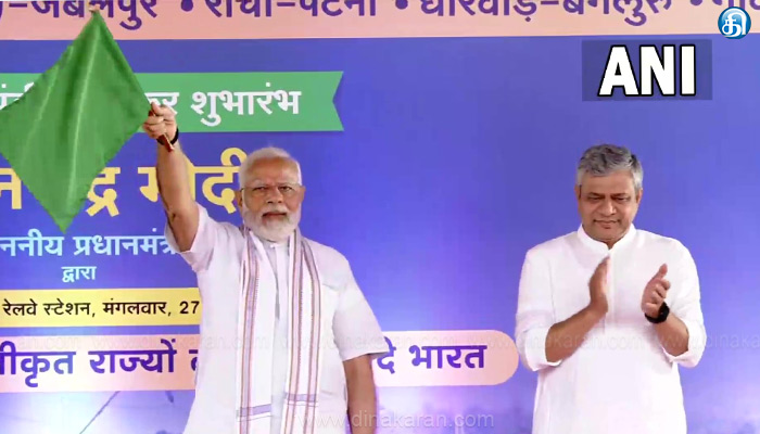 மத்தியபிரதேசம்: மத்தியப்பிரதேசத்தில் 5 வந்தே பாரத் ரயில் சேவைகளை பிரதமர் நரேந்திர மோடி தொடக்கி வைத்தார். போபால் -இந்தூர், போபால்- ஜபல்பூர் இடையே வந்தே பாரத் ரயில் சேவை தொடங்கப்பட்டது. ராஞ்சி- பாட்னா, கோவா-மும்பை, பெங்களூரு- தார்வாட் வந்தே பாரத் ரயில் சேவைகளும் தொடங்கப்பட்டது.