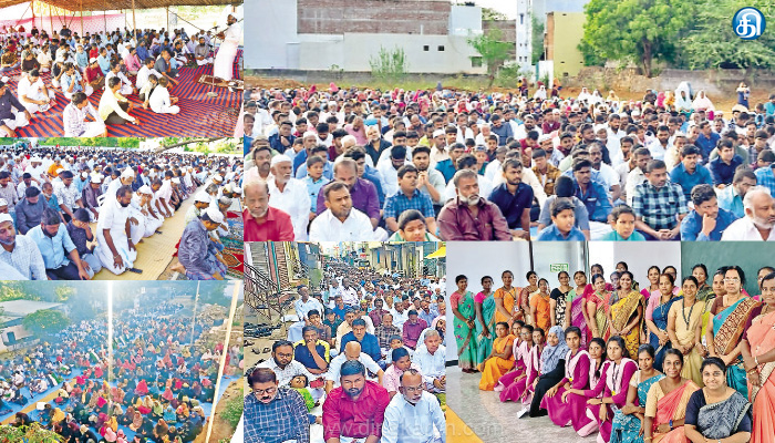 இதனிடையே தமிழ்நாடு தவ்ஹீத் ஜமாத் சார்பில் கடையம் அருகேயுள்ள முதலியார்பட்டி மர்கஸ் தெருவில் நடந்த சிறப்பு தொழுகையில் அஷ்ரம் பெருநாள் சொற்பொழிவு ஆற்றினார். இதில் பங்கேற்ற கிளை நிர்வாகிகள் உள்ளிட்ட திரளானோர் ஒருவருக்கொருவர் ஆரத்தழுவி பெருநாள் வாழ்த்துகளை மகிழ்ச்சியுடன் பரிமாறிக்கொண்டனர்.புளியங்குடி: புளியங்குடி மஸ்ஜிதுர் ரஹ்மான் தவ்ஹீத் பள்ளிவாசல் சார்பில் நியூ கிரஸன்ட் ஸ்கூல் அருகேயுள்ள மைதானத்தில் நடந்த சிறப்பு தொழுகைக்கு ஜமாத் தலைவர் அப்துர் ரஹ்மான் தலைமை வகித்தார்.