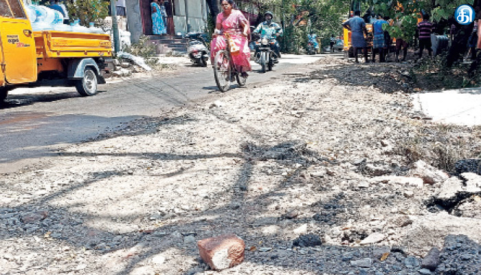 குடிநீர் குழாய் பதிக்க ஒப்பந்தம் எடுத்த நிறுவனம், தோண்டிய சாலைகளில் ஒட்டுவேலைகளை செய்ய வேண்டுமென ஒப்பந்தத்தில் உள்ள நிலையில், ஒட்டுவேலைகளையும் பார்க்காமல் விடுவதால் சாலைகள் தரமற்ற சாலைகளாக மாறி வருகின்றன. இதனால் வாகன ஓட்டிகள் சறுக்கி விழுந்து விபத்துக்களில் சிக்கி காயமடைந்து வருகின்றனர். மாவட்ட நிர்வாகம் தலையிட்டு தோண்டிய சாலைகள் அனைத்திலும் ஒட்டுவேலைகளை பார்க்க உத்தரவிட்டு, போக்குவரத்திற்கு உகந்த சாலைகளாக மாற்ற நடவடிக்கை எடுக்க வேண்டுமென சமூக ஆர்வலர்கள் தெரிவிக்கின்றனர்.