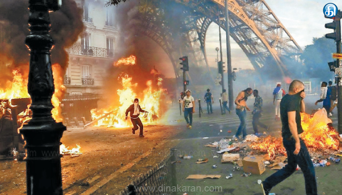 பாரிஸ்: சிறுவன் சுட்டுக் கொல்லப்பட்ட விவகாரத்தால் பிரான்ஸ் நாடே பற்றி எரிவதால், அங்கு தொடர்ந்து பதற்றமான சூழல் நிலவி வருகிறது. வட ஆப்பிரிக்க வம்சாவளியைச் சேர்ந்தவரும், அல்ஜீரியாவிலிருந்து புலம்பெயர்ந்த நஹேல் என்ற 17 வயது சிறுவனின் குடும்பம், பிரான்சின் பாரிசில் வசித்து வருகிறது. பாரிசின் புறநகர்ப் பகுதியில் கடந்த செவ்வாயன்று போக்குவரத்து வாகனச் சோதனையின்போது, காரை நிறுத்தாமல் சென்ற சிறுவன் நஹேல் போலீசாரால் சுட்டுக் கொல்லப்பட்டார். இச்சம்பவம், நான்கு நாள்களாக நாட்டையே பற்றியெரிய வைத்திருக்கிறது. நஹேலை சுட்டுக் கொன்ற 38 வயது போலீஸ் அதிகாரி, ‘அந்த சிறுவன் வேறு யார் மீதாவது காரை ஏற்றிவிடுவானோ’ என்ற அச்சத்தில் துப்பாக்கியால் சுட்டதாகத் தெரிவித்தார்.