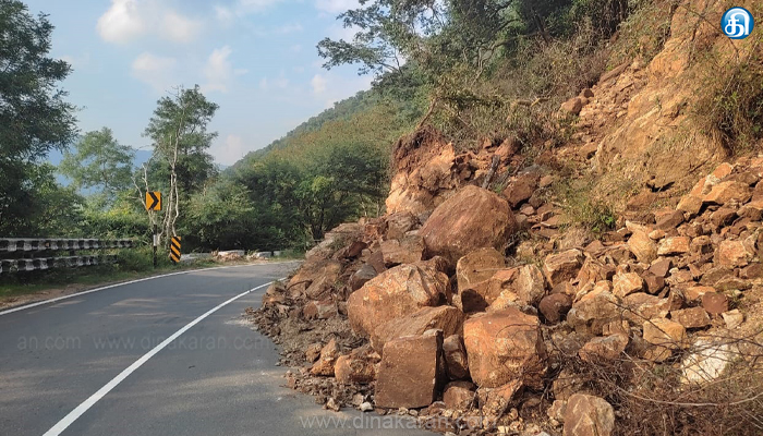 மூணாறு அருகே கேப் ரோடு மலைச்சாலையில் திடிரென மண் மற்றும் பாறை சரிவு