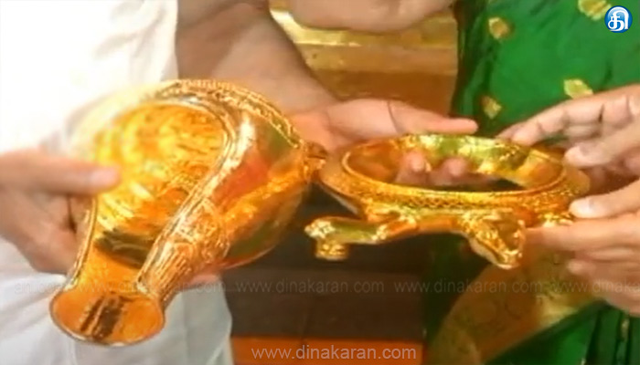 திருப்பதி: திருப்பதி ஏழுமலையான் கோயிலுக்கு தங்கத்தால் ஆன அபிஷேக சங்கு மற்றும் ஆமை போல வடிவமைக்கப்பட்ட சக்கரம் ஒன்றை பக்தர் ஒருவர் தானமாக வழங்கியுள்ளனர். திருப்பதி வெங்கடாஜலபதி ஆலயம் உலகப் புகழ் பெற்றது. திருப்பதி பெருமாள் தான் உலகிலேயே மிகவும் பணக்காரக் கடவுள் என்ற பெருமை பெற்றவர். திருப்பதி தேவஸ்தானம், கோவிலின் தினசரி நடவடிக்கைகளை மேற்கொண்டு வருகிறது. திருப்பதி கோவிலுக்கு ஏராளமான பக்தர்கள் நிலம் மற்றும் பொருட்களை தானமாக வழங்குவார்கள்.