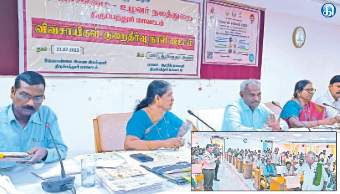 திருப்பத்தூர் மாவட்ட கலெக்டர் அலுவலகத்தில் நேற்று விவசாயிகள் குறைதீர்வு கூட்டம் நடைபெற்றது. கலெக்டர் பாஸ்கர பாண்டியன் தலைமை தாங்கினார். இதில் மாவட்டத்திலிருந்து ஏராளமான விவசாயிகள் கலந்து கொண்டு விவசாயிகளுக்கு தேவையான அரசு சலுகைகள் மற்றும் பல்வேறு கோரிக்கைகளை வலியுறுத்தி பேசினர். கூட்டத்தில் நடந்த விவாதங்கள் பின்வருமாறு,விவசாயி: திருப்பத்தூர் மாவட்டத்திலுள்ள பத்திரப்பதிவுத்துறை அலுவலகத்தில் விவசாயிகள் குறித்த புகார் அளித்தால் எவ்வித நடவடிக்கையும் எடுக்கப்படுவதில்லை, போலி பத்திரங்கள் பதிவு செய்யப்படுகிறது. இதுகுறித்து பதிவுத்துறை அதிகாரிகள் நடவடிக்கை எடுப்பதில்லை எனவே இதற்கு உரிய நடவடிக்கை எடுக்க வேண்டும்.