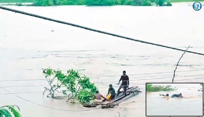திருமலை: தெலங்கானா மாநிலம் அதிலாபாத் மாவட்டம் வடூர் பென்கங்கை நதியையொட்டி பல்வேறு கிராமங்கள் உள்ளன. இங்குள்ள மக்கள் மறுபுறம் செல்வதற்கான பாலம் இல்லாததால் படகு மூலம் சென்று வருகின்றனர். இந்த நதியில் தாடிப், ரெண்ட்ல ஸ்ரீனிவாஸ், குஷால் ஆகியோர் நாட்டு படகு ஓட்டி பிழைப்பு நடத்தி வருகின்றனர். படகு மூலம் பொதுமக்களை ஒரு கரையில் இருந்து மற்றொரு கரைக்கு ஏற்றிச்செல்லும் இவர்கள், சவாரி இல்லாத நேரங்களில் கரையோரம் படகுகளை நிறுத்தி வைப்பது வழக்கம். இந்நிலையில் தெலங்கானா மாநிலத்தில் பல்வேறு பகுதிகளில் பெய்துவரும் பலத்த மழையால் ஆறுகள், ஓடைகளில் வெள்ளப்பெருக்கு ஏற்பட்டுள்ளது. அதேபோல் பென்கங்கை நதியிலும் வெள்ளப்பெருக்கு ஏற்பட்டது.