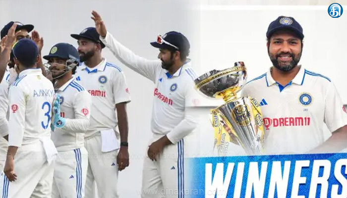 போர்ட் ஆப் ஸ்பெயின் : மேற்கிந்திய தீவுகள் அணிக்கு எதிரான டெஸ்ட் தொடரை 1-0 என்ற கணக்கில் இந்திய அணி வென்றது. குயின்ஸ் பார்க் ஓவல் மைதானத்தில் கடந்த 20ம் தேதி தொடங்கி நடந்து வந்த இப்போட்டியில், டாஸ் வென்ற வெஸ்ட் இண்டீஸ் முதலில் பந்துவீச… இந்தியா முதல் இன்னிங்சில் 438 ரன் குவித்து ஆல் அவுட்டானது. ஜெய்ஸ்வால் 57, ரோகித் 80, கோஹ்லி 121, ஜடேஜா 61, அஷ்வின் 56 ரன் விளாசினர். அடுத்து களமிறங்கிய வெஸ்ட் இண்டீஸ் முதல் இன்னிங்சில் 255 ரன்னுக்கு சுருண்டது. கேப்டன் பிராத்வெய்ட் அதிகபட்சமாக 75 ரன் விளாசினார். இந்திய பந்துவீச்சில் சிராஜ் 5, முகேஷ், ஜடேஜா தலா 2, அஷ்வின் 1 விக்கெட் வீழ்த்தினர்.