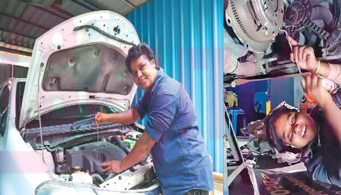 உறுதி காட்டும் பெண் கார் மெக்கானிக்