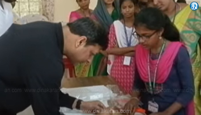 அப்போது அவருடன் சேர்ந்து கல்லூரி மாணவிகள் சொந்தமாக நாப்கின்களை தயாரித்து மகிழ்ந்தனர். பெண்கள் எளிய முறையில் நாப்கின் தயாரிக்கும் வகையில் வடிவமைக்கப்பட்டுள்ள இந்த இயந்திரம் கல்லூரி மாணவிகள் இடையே வரவேற்பை பெற்றுள்ளது. இதனை தொடர்ந்து கல்லூரி மாணவ மாணவிகளுடன் உரையாடியவர் அவர்கள் கேட்ட பல்வேறு கேள்விகளுக்கு பதிலளித்தார். அதன் பின்னர் கல்லூரி வளாகத்தில் பசுமை திட்டத்தின் கீழ் மரக்கன்றுகள் நடும் நிகழ்ச்சியில் அவர் கலந்து கொண்டு மாணவ மாணவியர் முன்னிலையில் மரக்கன்றுகளை நட்டுவைத்தார்.