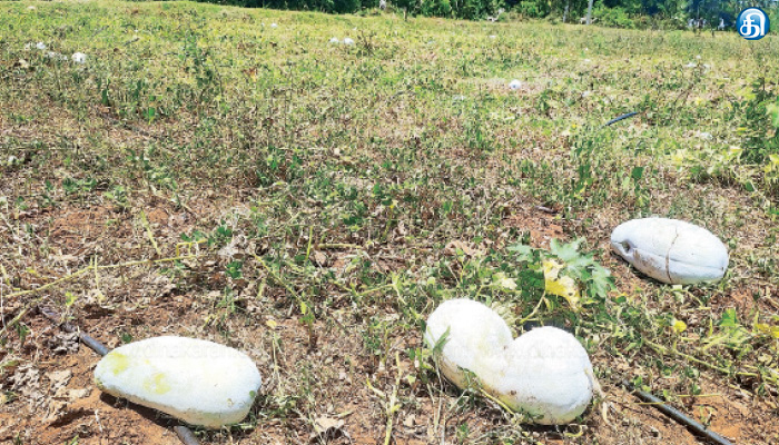 பிப்ரவரி முதல் மே மாதம் வரையிலும், சில நாட்களை தவிர பிற நாட்களில் மழையின்றி வெயிலின் தாக்கமே அதிகமானது. இதனால், அந்நேரத்தில் பூசணி பயிரிடுவது குறைந்ததுடன், அதன் விளைச்சலும் மிகவும் குறைந்தது. அதன்பின் கடந்த மே மாதம் பெய்த கோடை மழைக்கு பிறகு சுற்றுவட்டார கிராமங்களில் பூசணி சாகுபடி அதிகமாக இருந்தது.